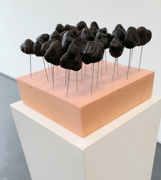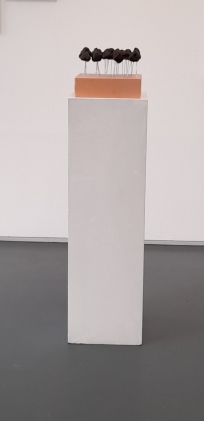 Schaumstoff, Stuhl, Draht, Klarlack, vom Darm des Künstlers aus Stuhl geformte Plastiken. Größe: 25cm x 25cm und 20cm hoch, stehend auf einem 1m hohen Podest.