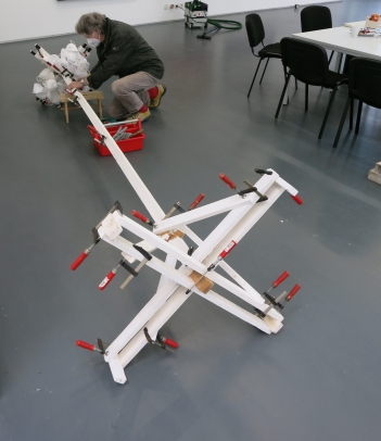 Latten, Schraubzwingen, FFP2-Masken,