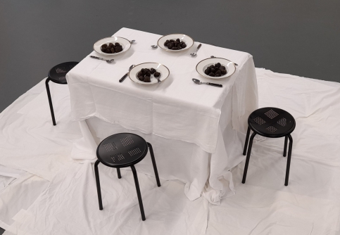 In meiner Installation "Hommage an den Stuhl, Metamorphose - eine unsichtbare Performance" wird die Umwandlung der aufgenommenen Nahrung sichtbar gemacht und dem Betrachter vor Augen und Nase geführt, wie wichtig dieser Wertstoff ist.