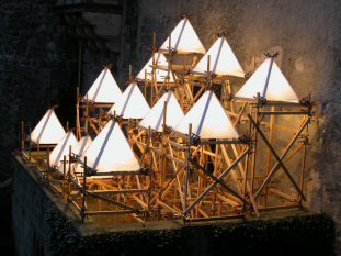 Ein neun-minütiges, sich wiederholendes Computer-Programm brachte die Glühbirnen , mal weich - mal hart- mal atmend - mal gewitterartig, zum Leuchten.