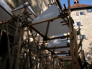 Latten, Zwingen, Folie, Leuchtkörper vom Computer angesteuert