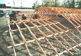 3m- und 2m-Latten, gesteckt nach dem Leonardo-Prinzip (ohne Zwingen,