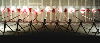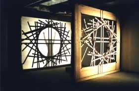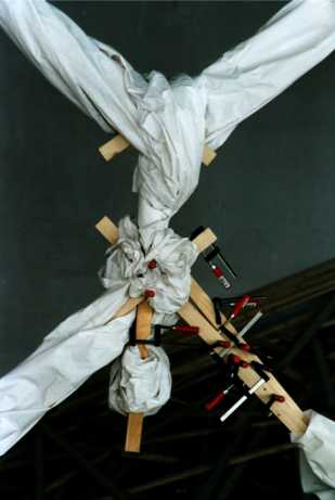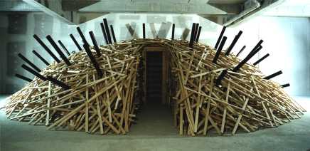 "Der Mensch ist des Menschen Wolf" < 3m x 3m x 0,5m Latten, Zwingen, Tücher ![]() |