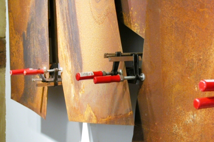 Material: Latten, Bleche, Zwingen