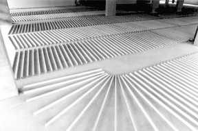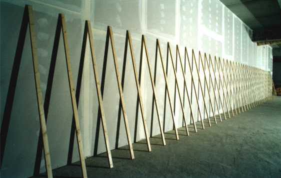 ![]() "An die Wand gestellt" Offenes Atelier Schachtweg, Wolfsburg 1998 20m x 0,5m x 2m Latten |