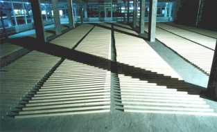 ![]() "Auslegungssache" Offenes Atelier Schachtweg, Wolfsburg 1998 24m x 17m Latten, 2m lang |