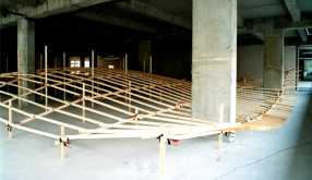 ![]() "Moby Dick" Offenes Atelier Schachtweg, Wolfsburg 1998 22m x 14m x 1,5m Latten, Zwingen |