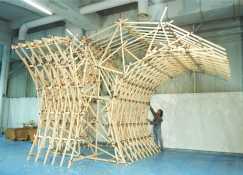 ![]() "Kreislaufwirtschaft" EXPO 2000 Hannover, Pavillon Kreislaufwirtschaft Wolfsburg, 2000 6m x 1m x 4m Latten, Zwingen |