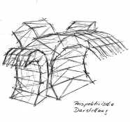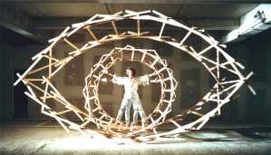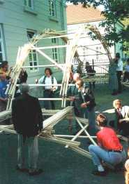 ![]() "Holzauge" Offenes Atelier Schachtweg, Wolfsburg 2000 7m x 2m x 3,5m Latten, gesteckt (Eine Hommage an Leonardo da Vinci) | ||