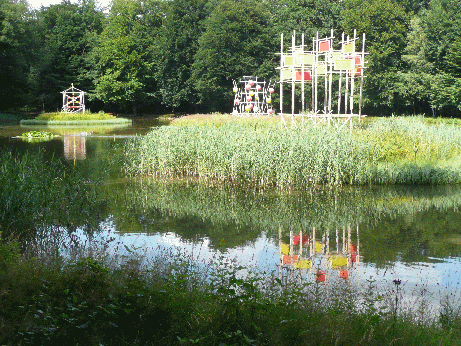weltweit - befinden sich auf dem Hauptteich drei Inseln, die von jeweils einem Objekt bespielt