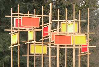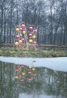 Integriert sind Klappen, Drehkreuze und Gymnastikbälle, die sich im Wind bewegen