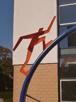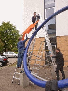 Material: Stahl, gestrichen in den Corporate Identity-Farben der Hochschule.