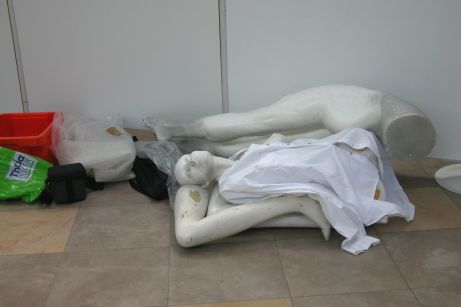 Wer diese künstlerische Installation von Eimo Cremer betrachtet, dem geht schon ein Schauer über den Rücken, das packt einen. Die Not, die hier zum Ausdruck kommt, das Ausnutzen ...."
